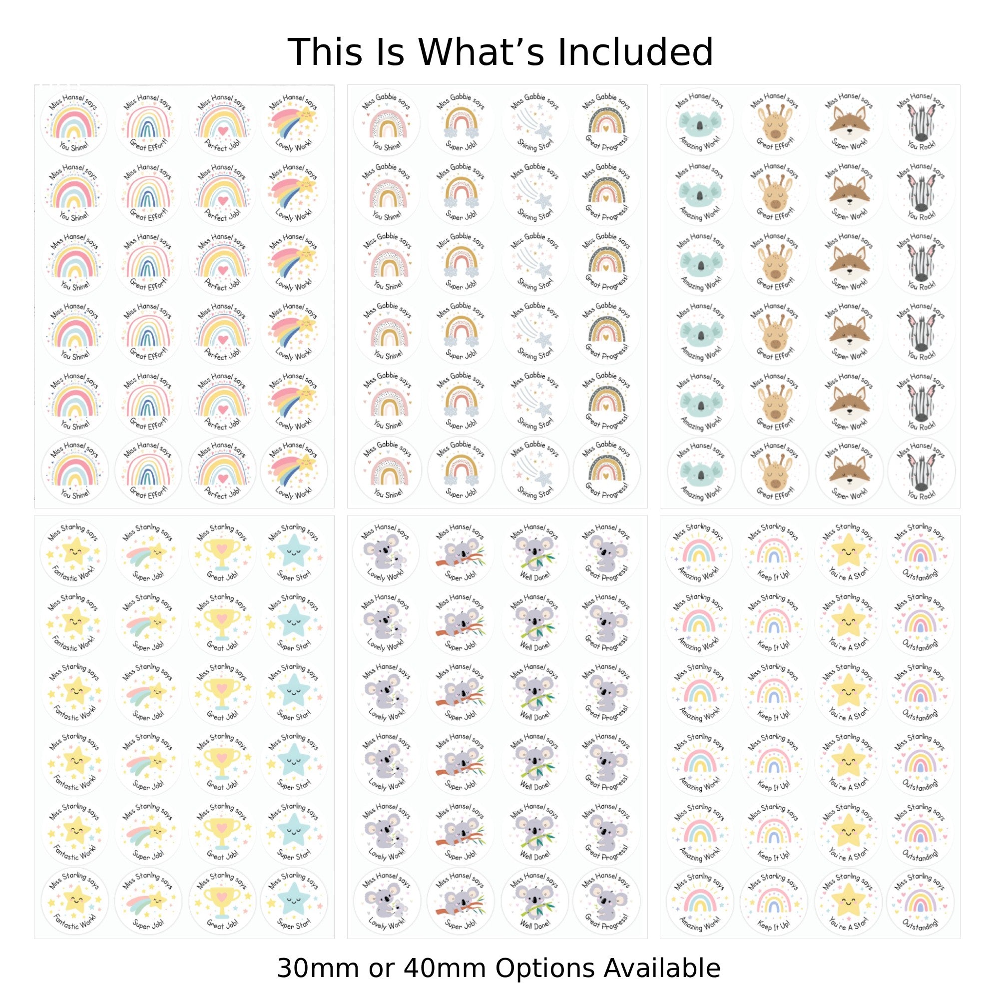 Not sure which size fits your classroom best? Check our Sticker Sizing Guide below for advice on choosing between 30mm or 40mm stickers. Smaller 30mm ones fit neatly on homework pages or behaviour charts, while 40mm stickers stand out on larger worksheets or reading logs.