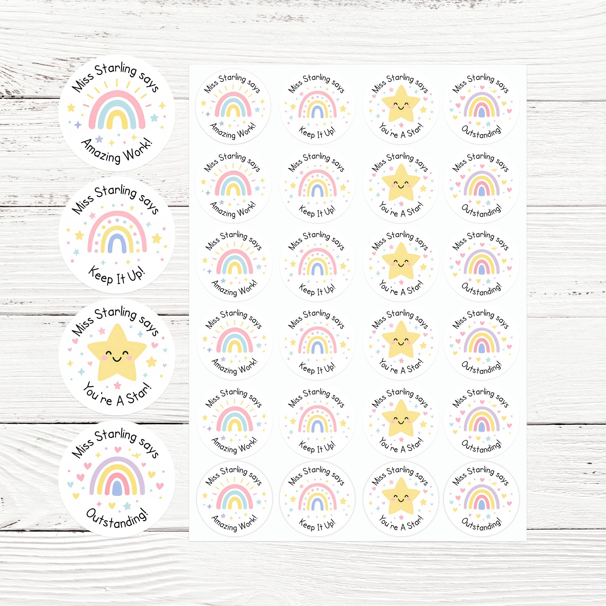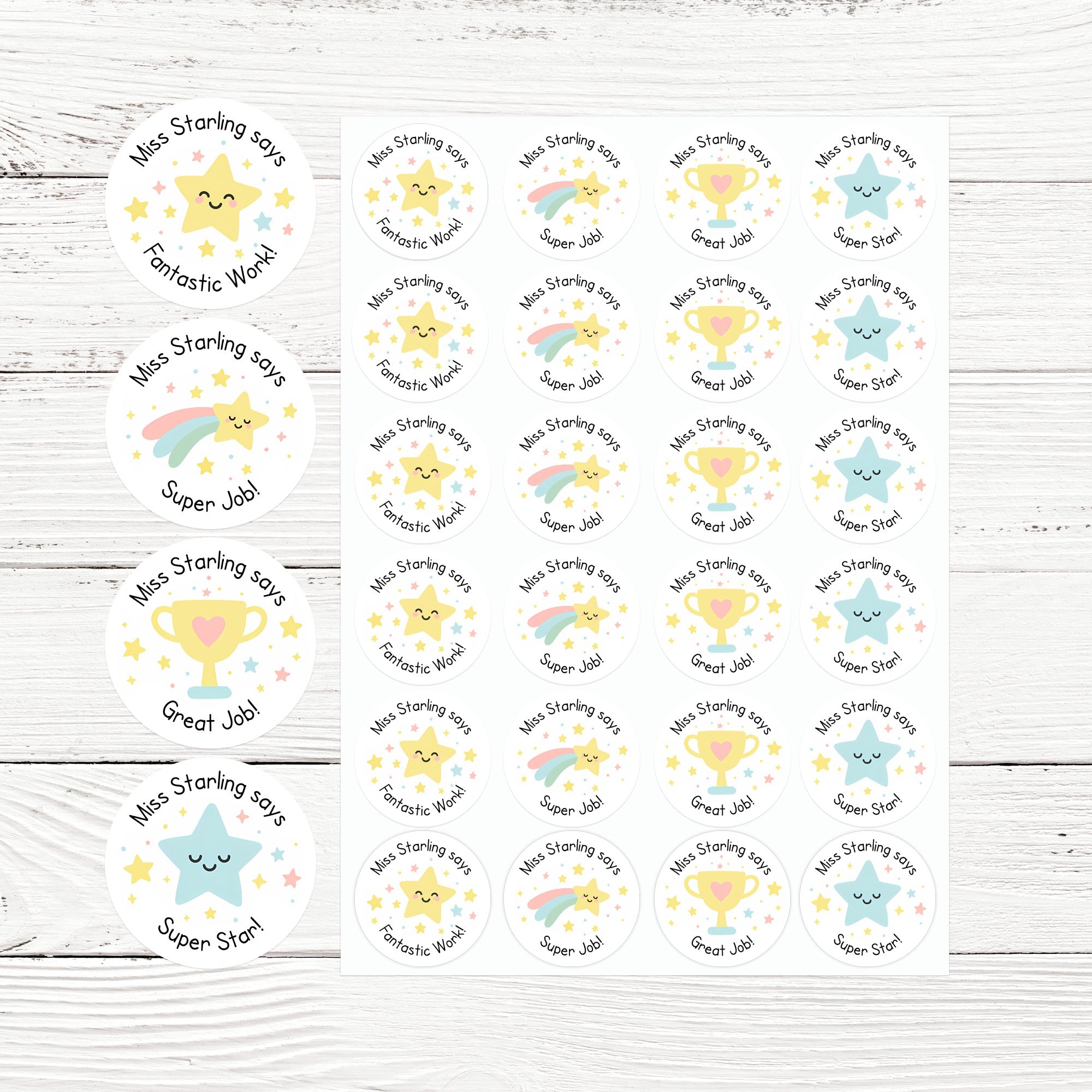 Each sticker is personalised with your teacher name (e.g., “Miss Starling says”), adding a warm, familiar touch students love. Personalisation makes these teacher stickers unique and helps build a positive classroom reward system. It creates a personal connection that fosters ongoing effort and participation.