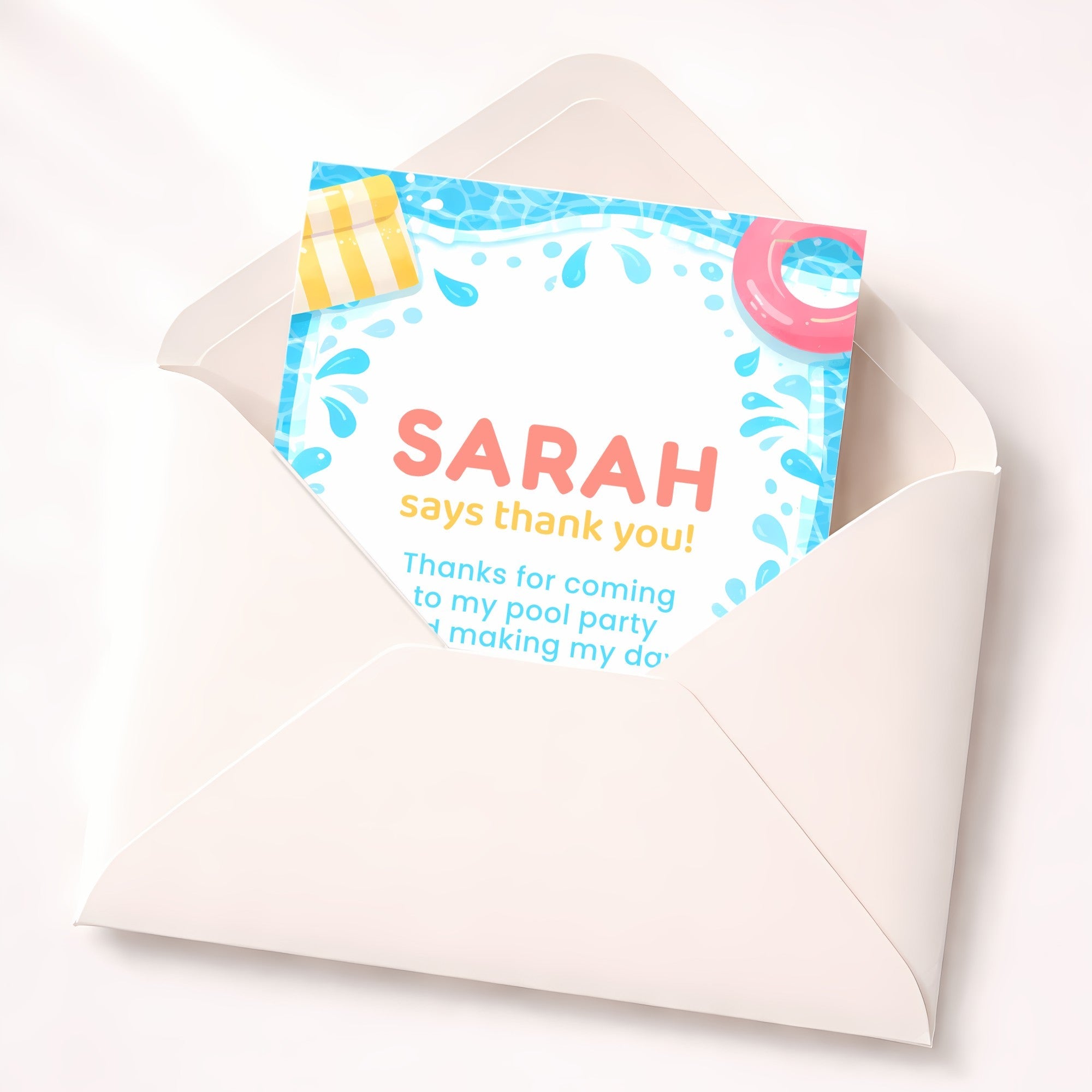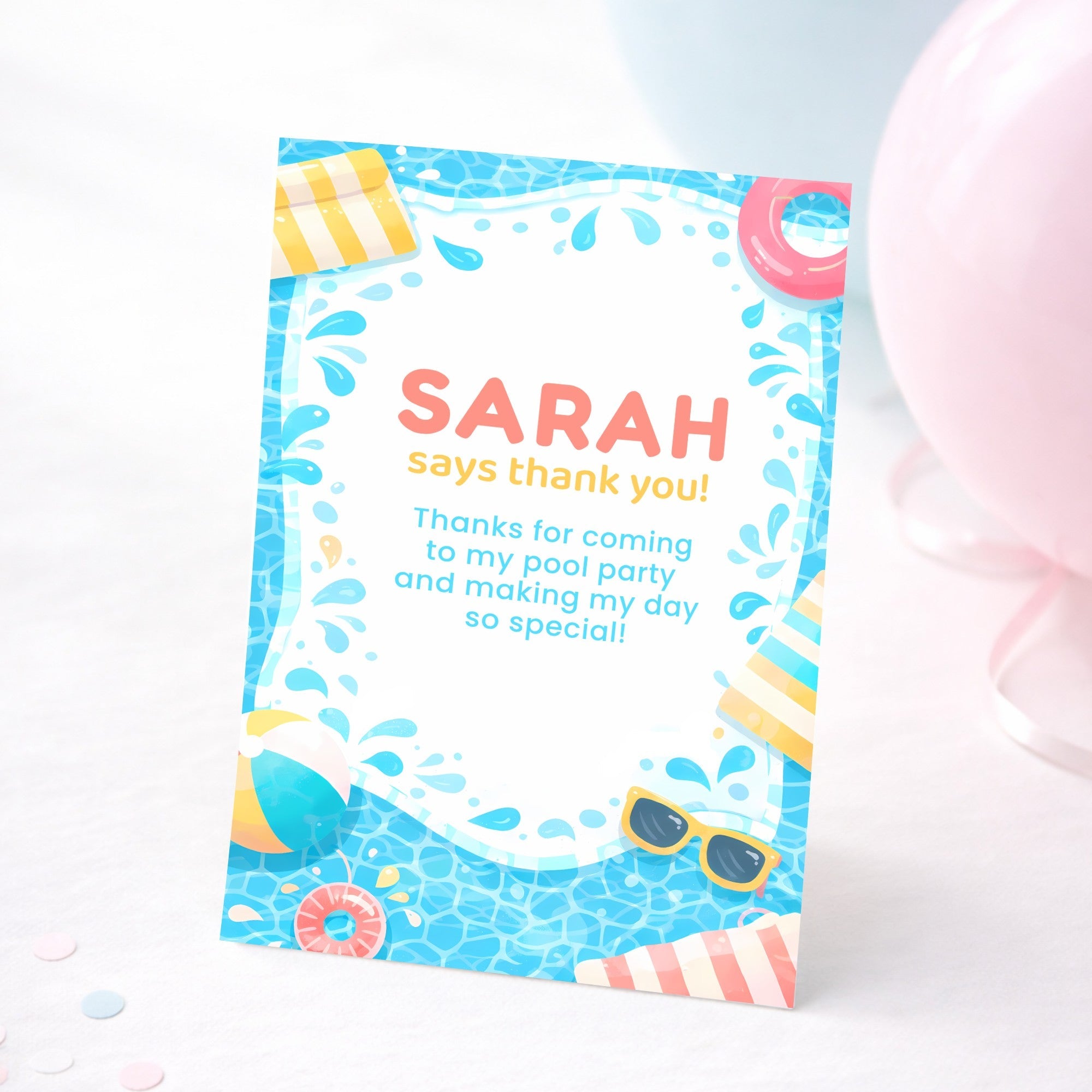 Personalised Pool Party Thank You Cards | Kids Birthday Thank You | Swimming Party Thank You Card