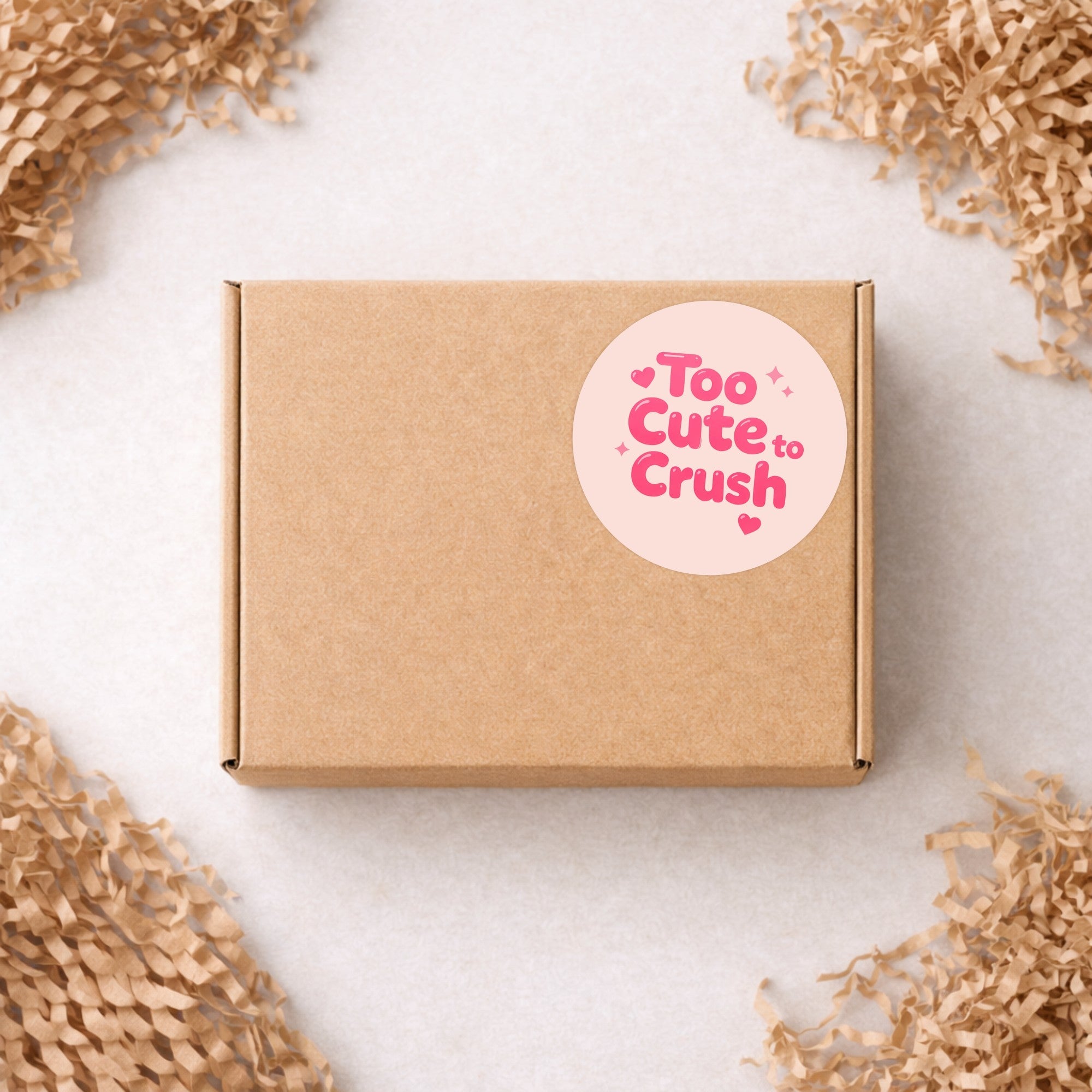 Add a sweet, playful reminder to your parcels with these adorable “Too Cute to Crush” round stickers, designed to encourage gentle handling while keeping your packaging fun, friendly, and on-brand.