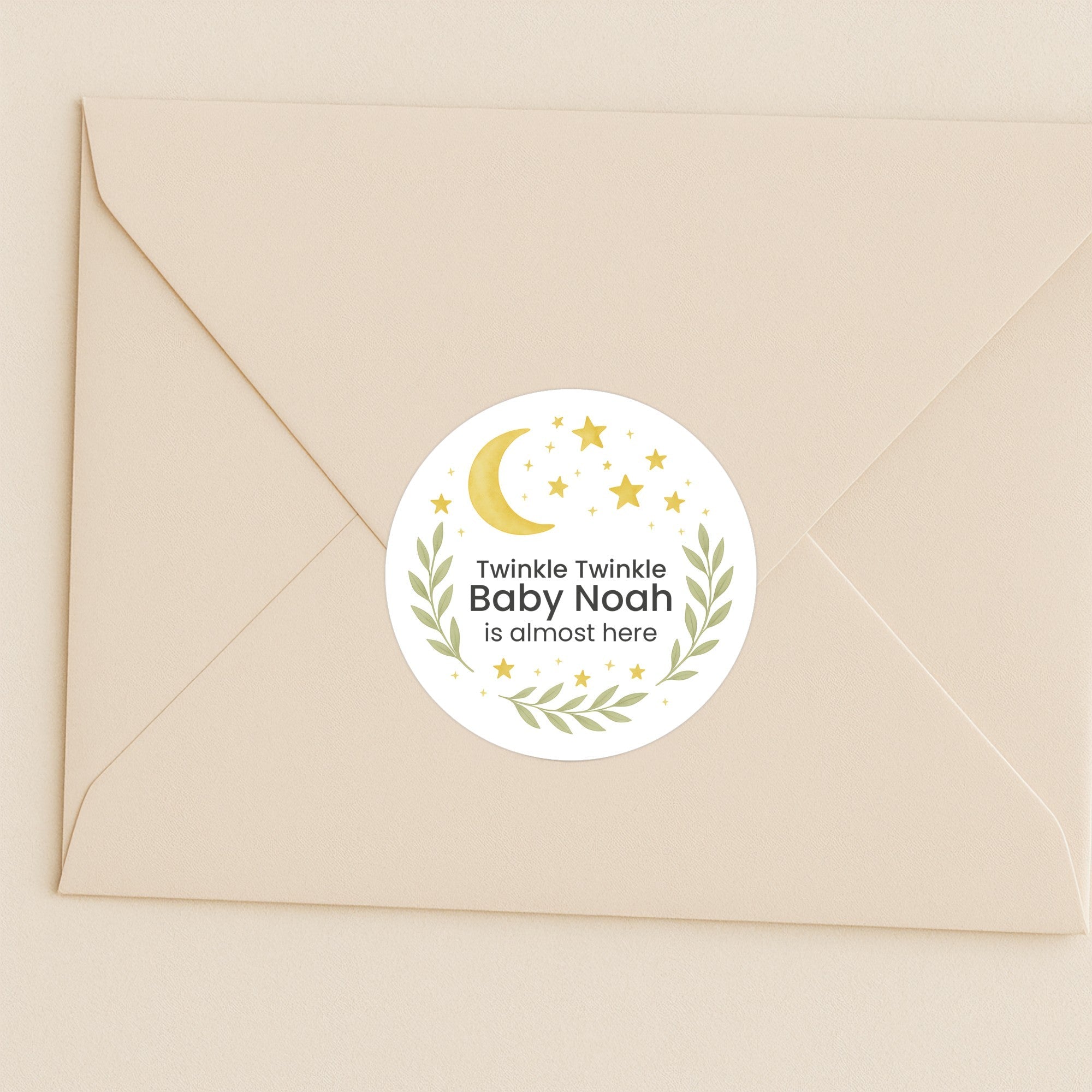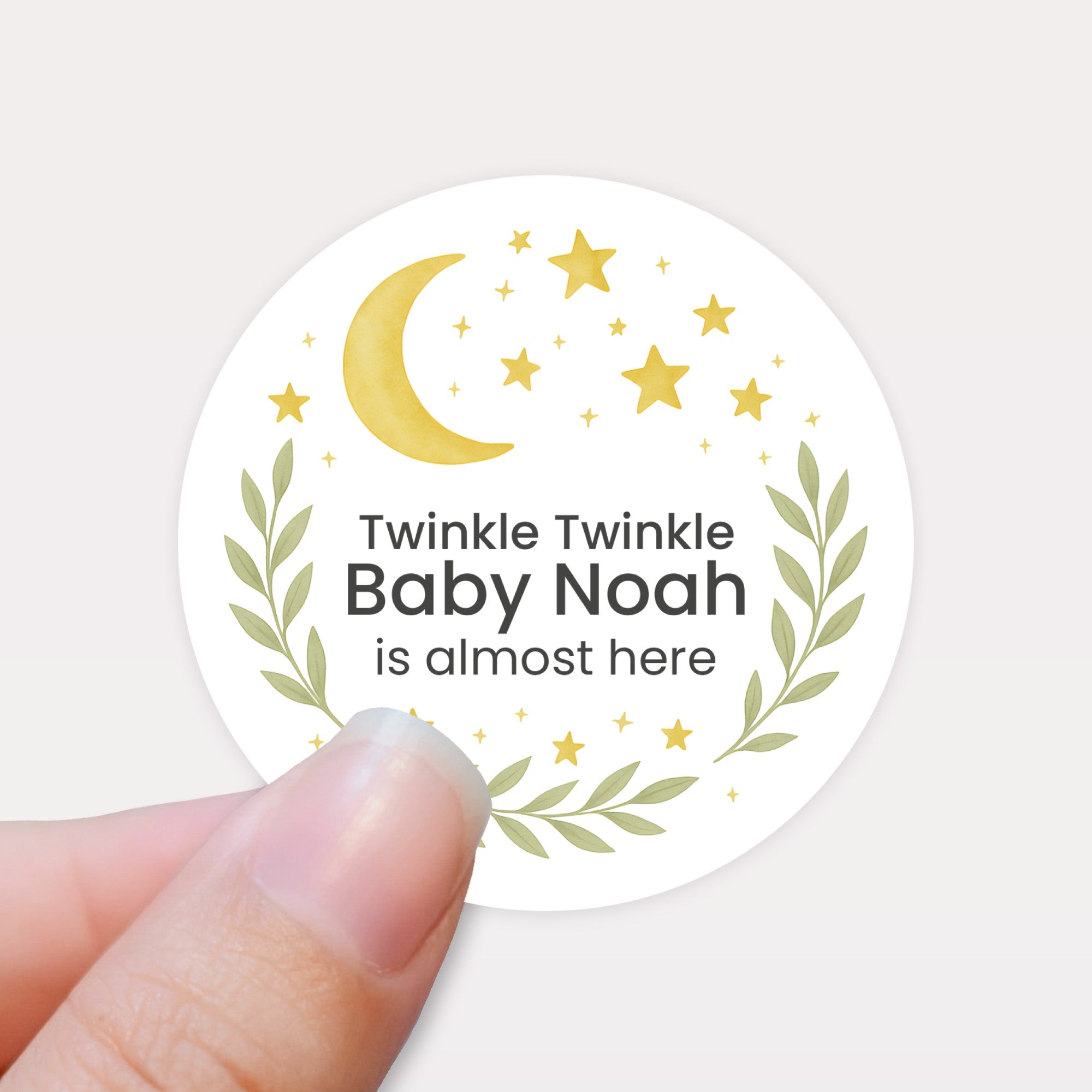 Twinkle Twinkle Baby Shower Stickers – Personalised Moon & Stars Favour Labels