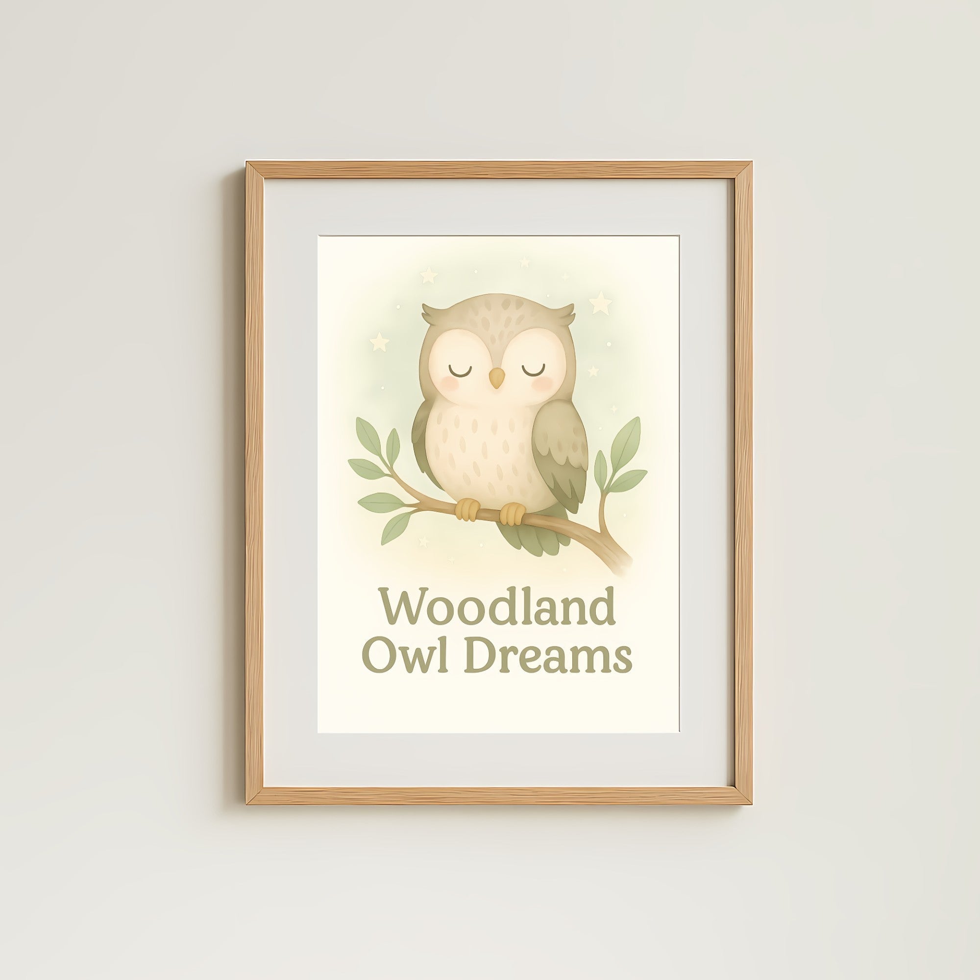 Woodland Owl Dreams Nursery Wall Art Print – Sleepy Owl Printable (Digital Download)