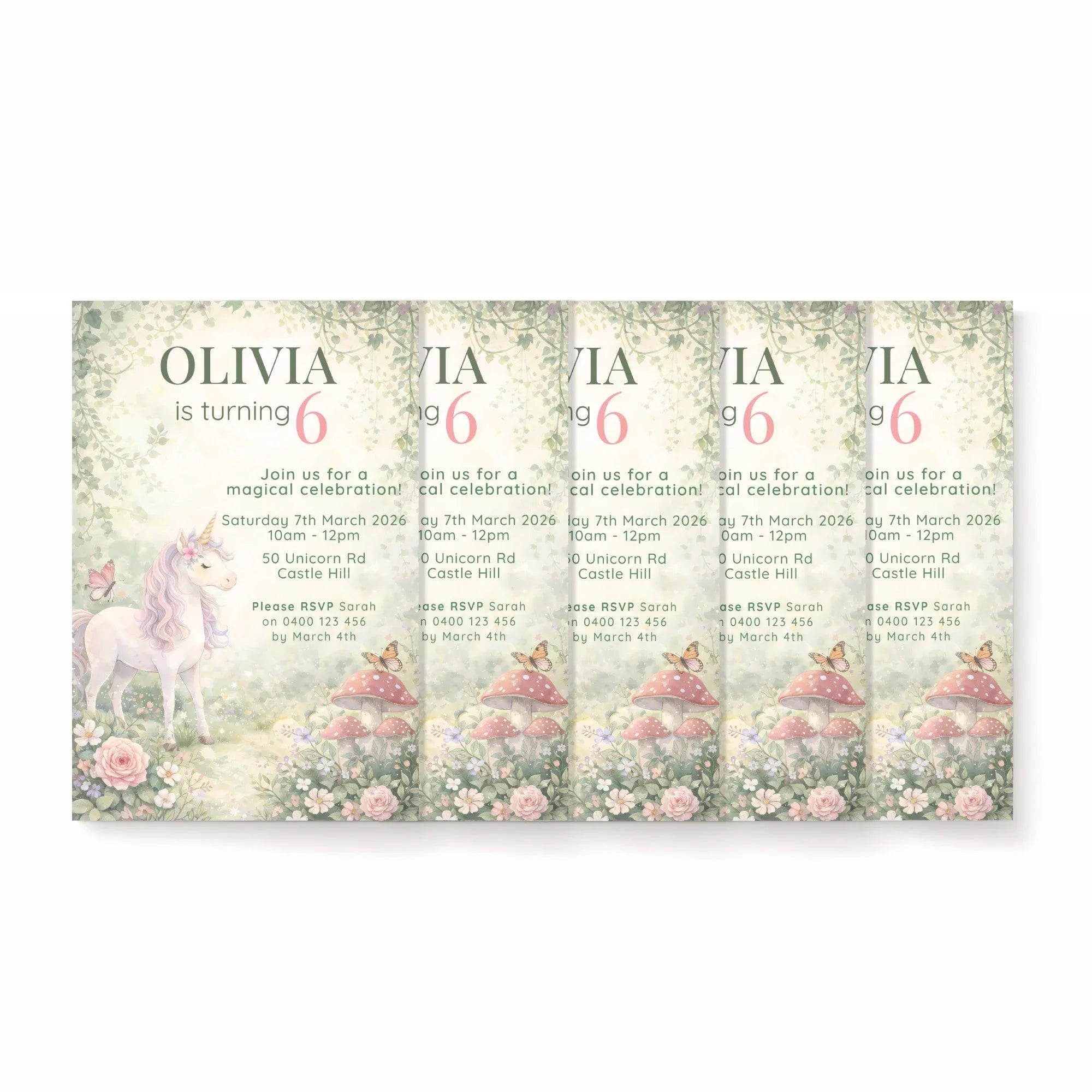 Woodland Unicorn Birthday Invitations | Personalised Enchanted Party Invites